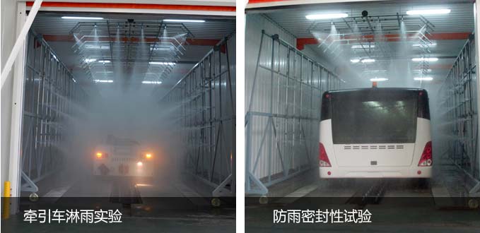 淋雨实验室可满足QC/T 476《客车防雨密封性限值及试验方法》的标准要求,可模拟自然界的降雨过程,根据试验要求实现不同的降雨效果。适用于大型车辆和特种装备,也可进行零部件密封性试验。