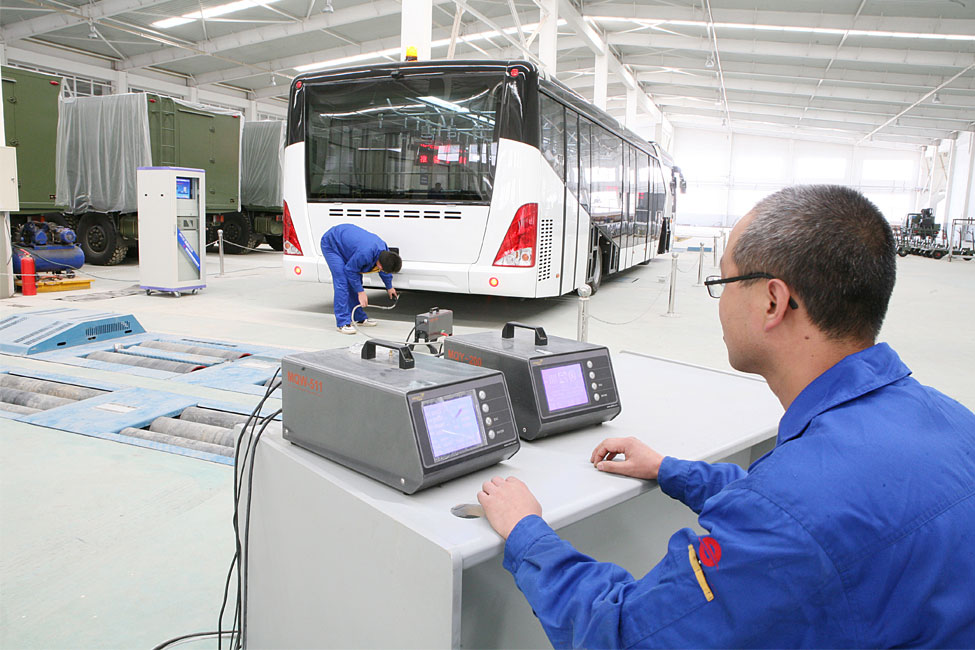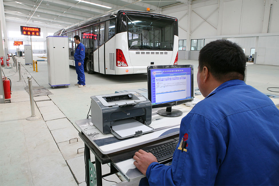 可进行车辆尾气排放测试、照明灯检测、汽车发动机综合分析、汽车轴(轮)重检测、汽车侧滑检测、汽车底盘测功、前轮转向性能检测和汽车制动检测