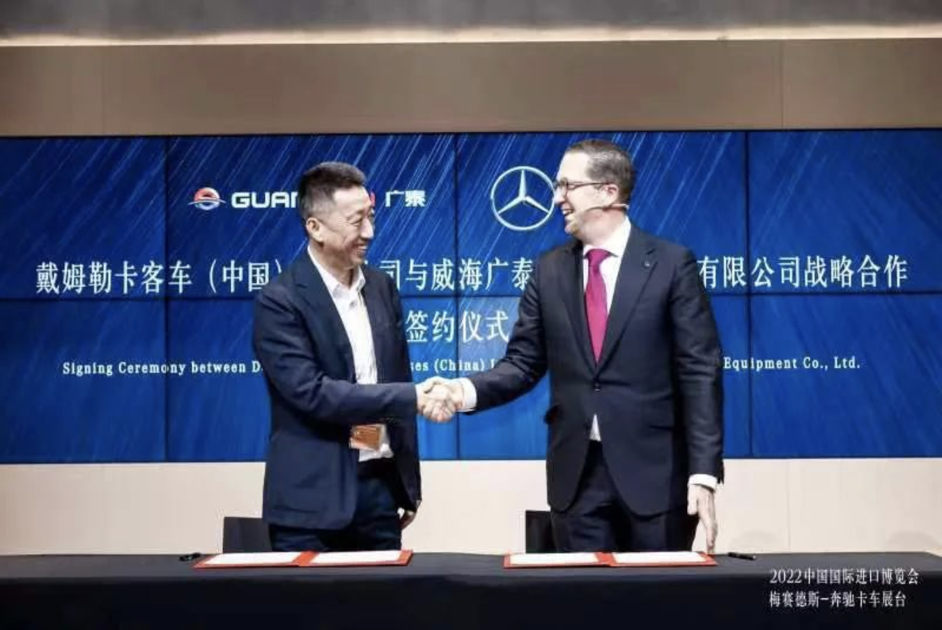2022年11月5日,在第五届中国国际进口博览会现场,8868体育(中国)官方网站 - 登录入口(以下简称“威海8868体育官网首页入口”)董事长李文轩与戴姆勒卡客车(中国)有限公司(以下简称“戴姆勒卡客车(中国)”)首席执行官秦坦签订了《战略合作框架协议》。双方在之前良好合作的基础上,正式建立战略合…