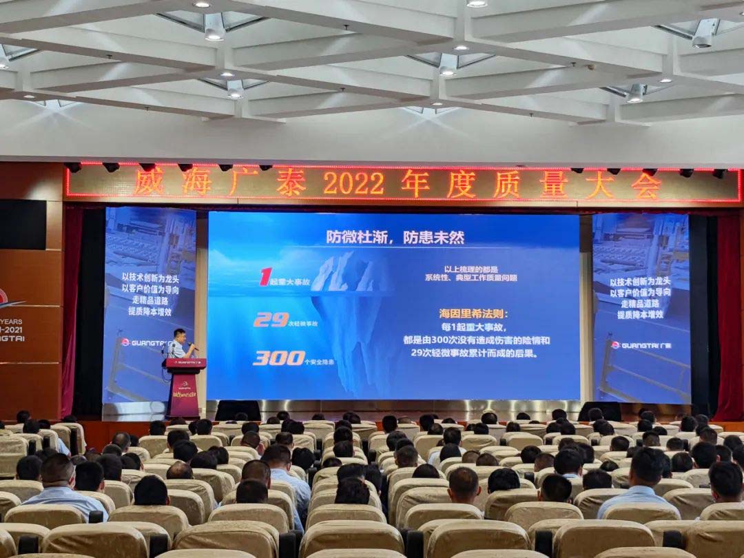 下午13:30,在8868体育官网首页入口研发大楼礼堂,威海8868体育官网首页入口召开以“数据推动质量创新 全面参与持续创新”为主题的2022年度质量大会,李文轩董事长出席会议,公司副总经理尚羽主持会议,各分子公司同步线上参会。