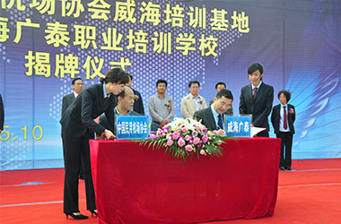 2015年10月,威海8868体育官网首页入口与中国民用机场协会联合在威海8868体育官网首页入口职业培训学校成立“中国民用机场协会威海培训基地”,整合优势资源,互利共赢,共同打造空港地面设备从业人员职业化培训平台,进一步拓宽了师资渠道和培训力量,提高培训质量和实效性,对推进我国机场从业人员资质能力培训的系统化、标准化,具有重要意义。