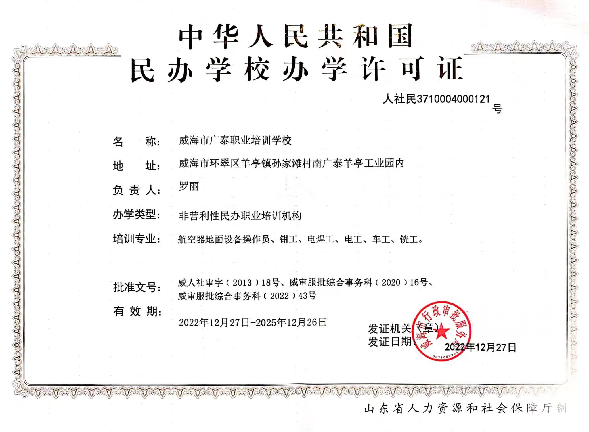 威海8868体育官网首页入口职业培训学校成立于2013年,由8868体育(中国)官方网站 - 登录入口全资设立。 学校位于威海市环翠区羊亭镇惠河路93号,是经威海市人力资源和社会保障局批准成立的职业培训机构,具有民航特种车辆操作工、民航特种车辆机械维修工、民航特种车辆电气维修工、钳工、电工、焊工、车工、铣工、涂装工、计算机操作员等工种的初、中、高级职业技能培训资质。学校致力于成为民航业内专业的技能提升培训服务机构,坚持“教练结合、寓教于练”的培训理念,为学员提供优质的培训服务。